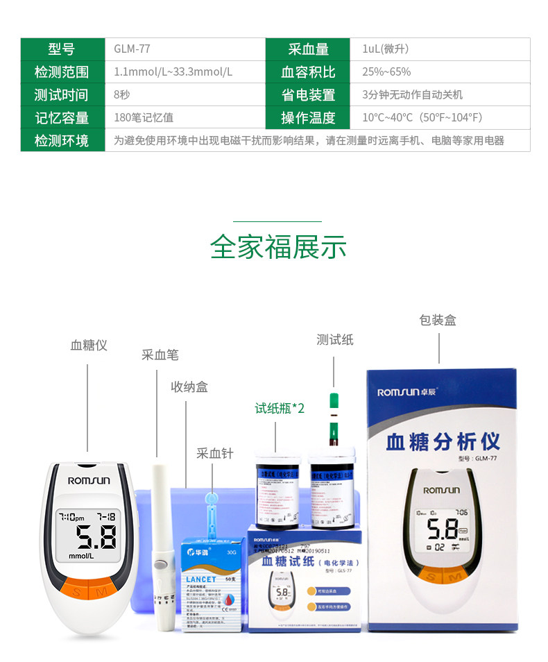 卓辰血糖测试仪家用试纸检测血糖的仪器全自动精准免调码血糖医仪