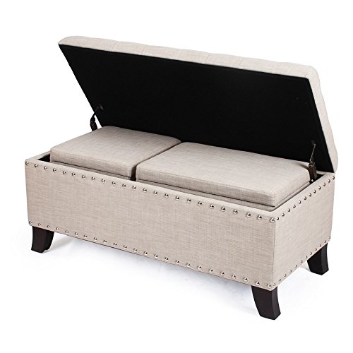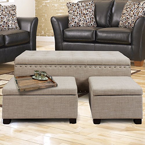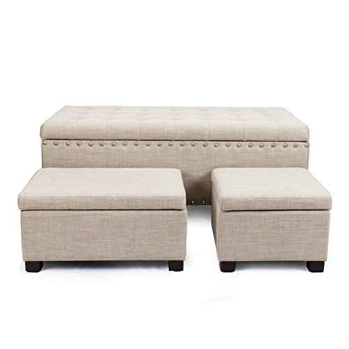 -. Title : DecentHome Fabric Tufted Nailhead Trim Trio Storage Ottoman Bench Set of 3