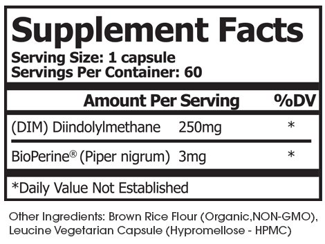 DIM 250mg per 1 vcap (2-month supply) Diindolylmethane, 60 Vegetarian Capsules