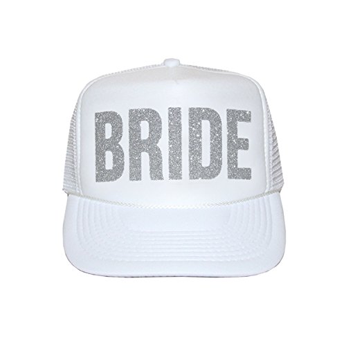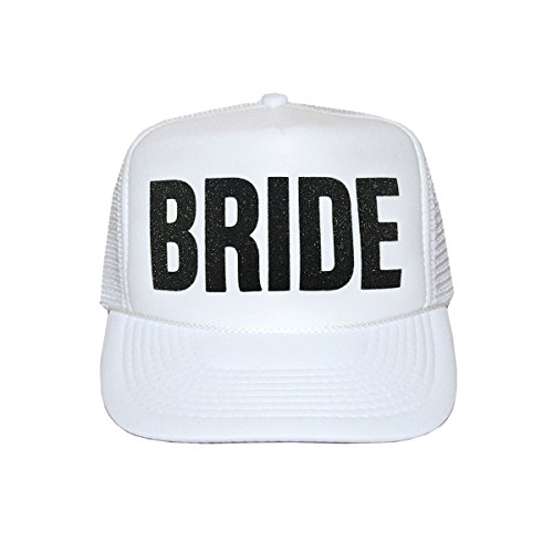 Binding : Apparel Product Description Here comes the BRIDE! Let it be known with our super cute and casually cool trucker hat! Enjoy this trucker cap as you get ready to say I DO! Don it during your festivities and during your happily ever after. You will look fabulous traveling to your honeymoon with your Mr. Solid white cap comes with BRIDE in glitter gold. These 5-panel caps include a matching Fabric Undervisor, Matching Color Sweatband, and Matching Color Braid. 0