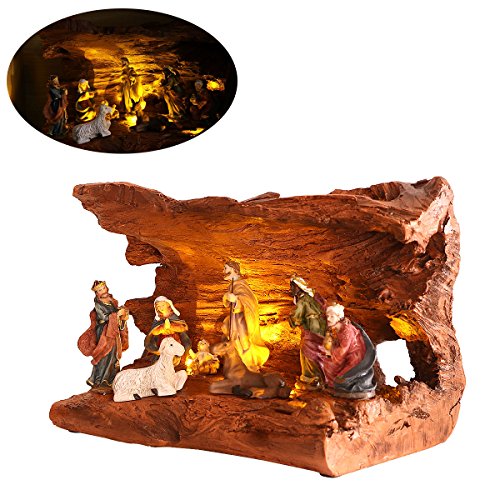 - UNIQUE DESIGN. Unique stable design like wooden vividly, a special part just like handle in the top nativity set, easy to carry and place.