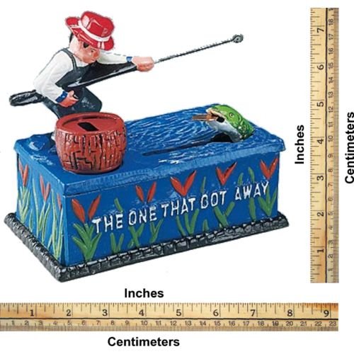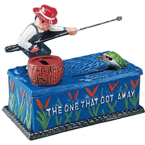 Bits and Pieces - Fishing Cast Iron Bank - Collectible Cast Iron Mechanical Bank
