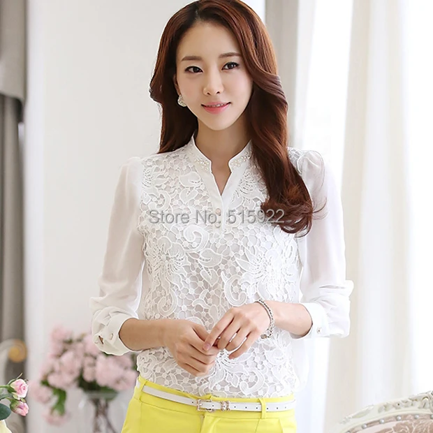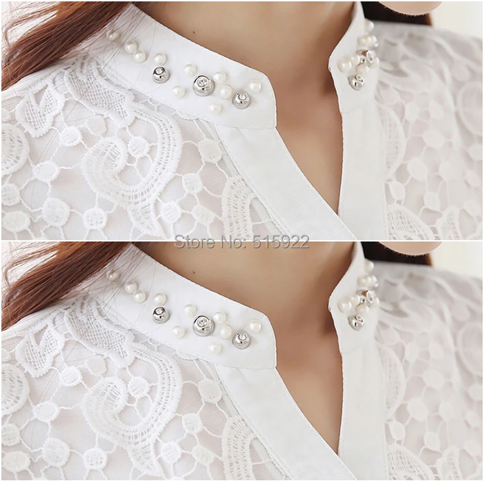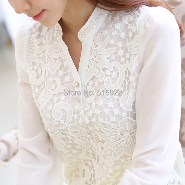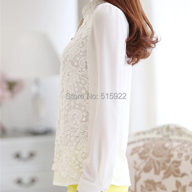 Model Number: Beading Crochet Plus size White Long Sleeve Chiffon Shir