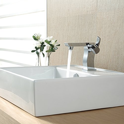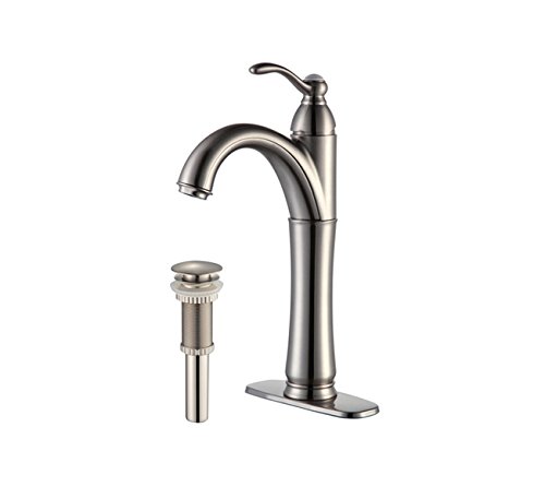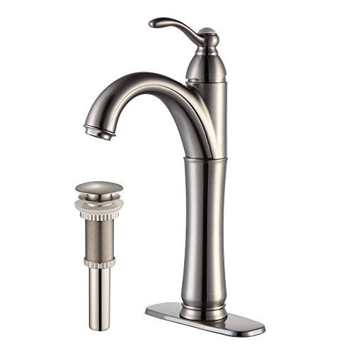 -. Title : Kraus FVS-1005-PU-10SN Riviera Single Lever Vessel Bathroom Faucet with Matching Pop Up Drain Satin Nickel