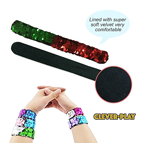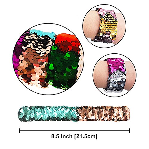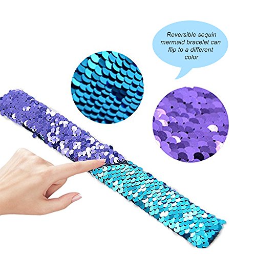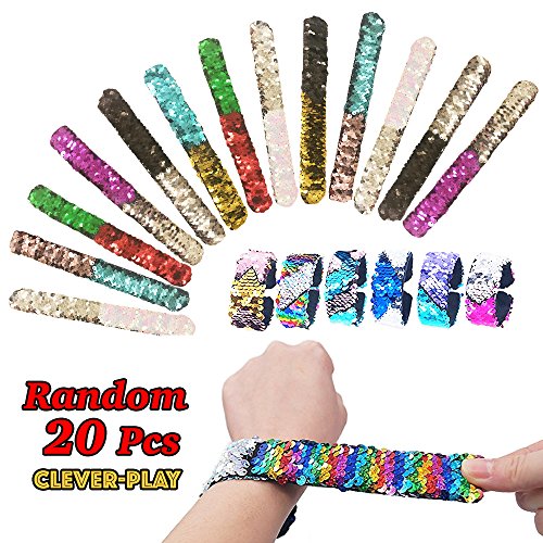 20 Pack Mermaid Bracelet, Birthday Party Favors Supplies Gifts Toys, Cleverplay Little Magic Reversible Charm Sequins Slap Bracelets Bulk for Kids,Girls,Boys