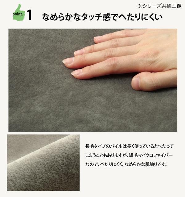 | 素材・材質 | 表地:ポリエステル100%(短毛マイクロファイバー)、パイル長2~3mm 裏地:ポリエステル100%(不織布)※すべりにくい加工 |