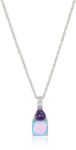 -. Title : Sterling Silver Lab Created Blue Opal, Amethyst and Lab Created White Sapphire Ring, Pendant, Earrings