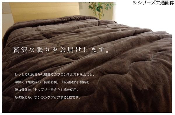 中材に旭化成の吸湿発熱、抗菌・消臭機能素材トップサーモSPを使用した毛布です。暖かさが持続し蒸れにくいので、快適な寝心地を感じて頂けます。 |