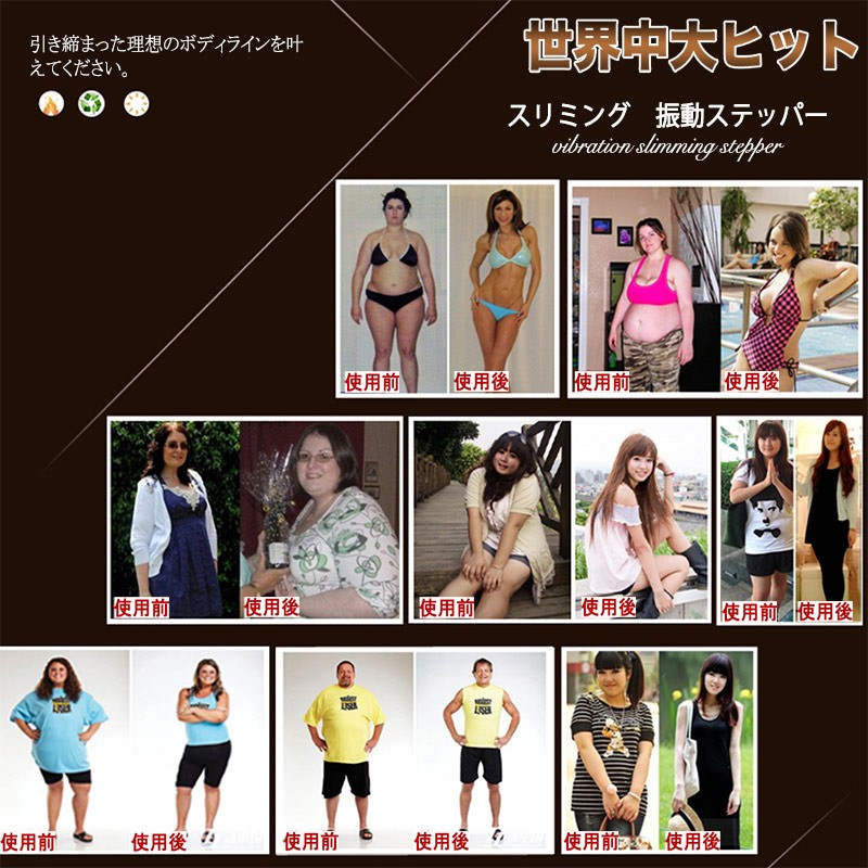 上に乗ってるだけで、ステッパーの高速振動によって筋肉を揺れらせ、全身隅々まで汗流し、燃 焼系運動しましょう!無理せず続けられる、1日たった10分で身体の中からすっきりきれいに!活力をチャージ!