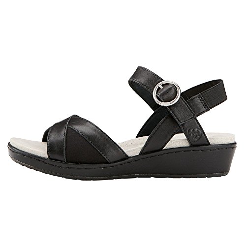 Product DescriptionGet comfort on-the-go in the Ariat Out and About sandal. The fit is phenomenal thanks to stretchy fabric panels and a gored back strap. Add in the ATS? technology and you'll feel heaven on your feet.0