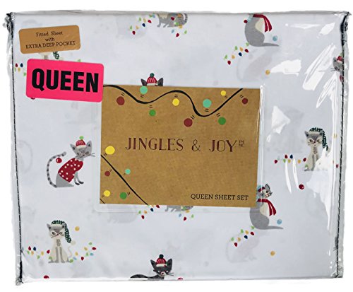 Christmas Kittens in Holiday Attire Four Piece Queen Sheet Set