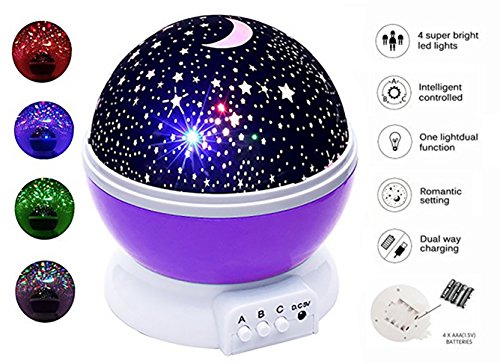 LIRUKOKO Sky Light Moon Light Star Projector 4 LED Bulbs 8 USB Cables Color Redemption Gifts Party (Purple)