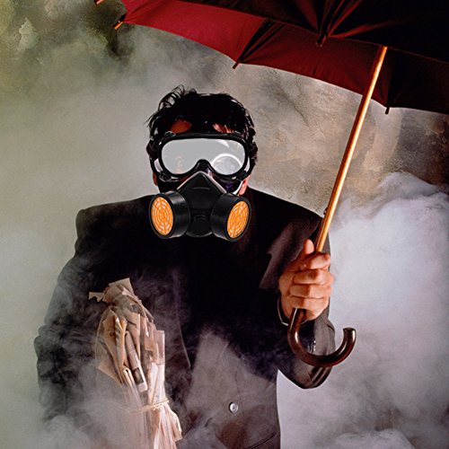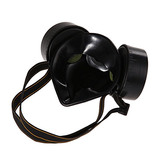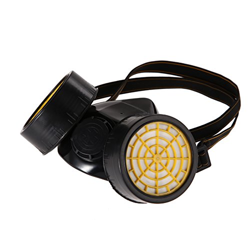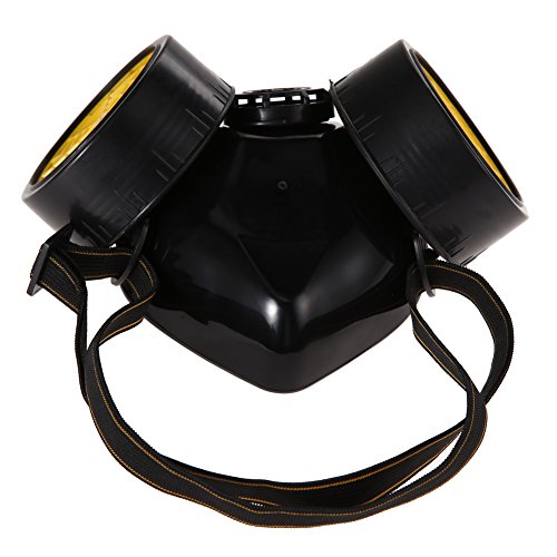 -. Feature : This gas mask was designed to protect you from breathing in dust and fine powders / Made of 4 components: Mask, filter box, respiration valve and elastic ribbon.Lens are made of polyurethane, impact resistance. / Dual cartridge system can be replaced with different cartridges for acidic gases or other chemical vapors. / Activated carbon in filter box can be removed and installed easily. / Fit for people who always touch organic vapor, Benzene and its homologue, petrol, pesticide, acetone, carbon disulfide, ether and so on in agriculture, industry and scientific research units