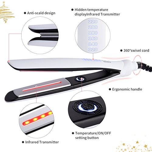 GREAT FOR ALL HAIR TYPES- Choose 6 temperature settings on the LCD digital display, 120C/248F for thin, fine or bleached hair; 140C-160C( 284F-338F) for colored hair; 180C-200C( 356F-392F) for normal or slightly curly hair; 220C( 428F) for thick and wavy hair.