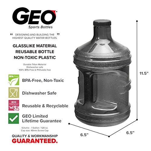 1 Gallon BPA FREE Reusable Plastic Drinking Water Bottle Jug Container (Charcoal Black)