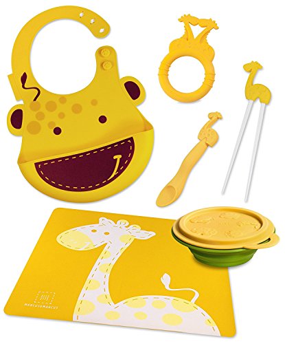 Marcus & Marcus Lola the Giraffe Silicone Baby Bib, Collapsible Bowl, Feeding Spoon, Chopsticks, Teether & Placemat