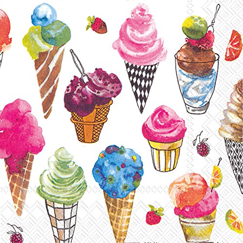 Ideal Home Range C733900 20 Count Summer Ice Cream 3-Ply Paper Cocktail Napkins, Multicolor