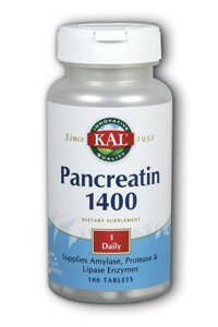 Studio : Kal Publisher : Kal Binding : Health and Beauty Product Description Pancreatin 1400mg 100 Tablet KAL Pancreatin supplies all three principal groups of pancreatic enzymes. Amylase, Protease (including Trypsin) and Lipase. Delivering Amylase Not Less Than 35,000 USP Units, Protease Not Less Then 35,000 USP Units, Lipase Not Less Than 2,800 USP Units.