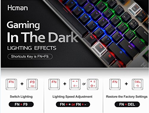 Gaming chip, N-Key Rollover: Mechanical Keyboard with anti-ghosting 87 keys and allows all keys to work simultaneously without confliction, Windows lock bring the smooth game experience. Multimedia Shortcuts Key: 8 multimedia keys, a quick access to dedicated media controls, for example: email, web browser, volume, play etc. Press FN+F5-F12 to switch