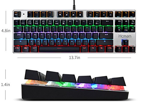 Design Idea: 87 key mechanical keyboard, Aluminum alloy panel, narrow design, double-shot injection molded floating ABS keycaps, two rubberized holders and two fold holers to prevent it from slip, great for ergonomical design. USB connector stand up to hardcore gaming directly and suitable for Windows 7, Windows 8, Windows 10, Windows XP, Vista, Mac OS