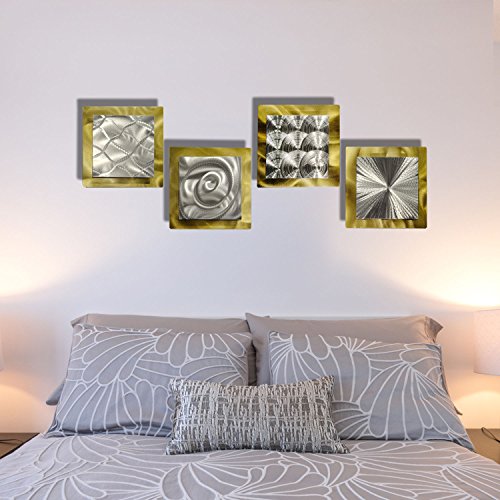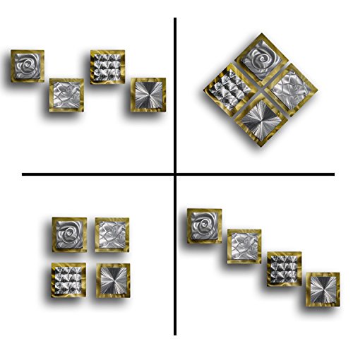 Gold & Silver Contemporary Metal Wall Art - Set of 4 Panel Modern Home Décor - Phenomena Sculpture Set By Jon Allen