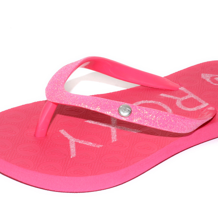 キラキラのストラップとロゴプリントが水辺に映えるキッズ用のビーチサンダルです。ストラップに付いているメタルパーツにはロゴマーク入りで、おしゃれな女の子に大人気。夏のコーディネートのアクセントになるデイリーユースにも最適な一足です。