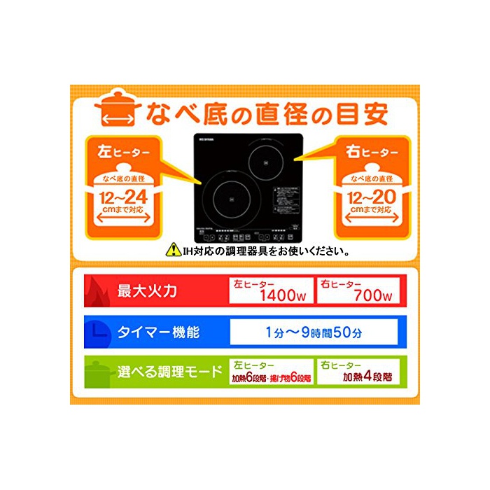원본상품명: アイリスオヤマ 2口IHクッキングヒタ 45cmタイプ ブラック IHC-S212-B