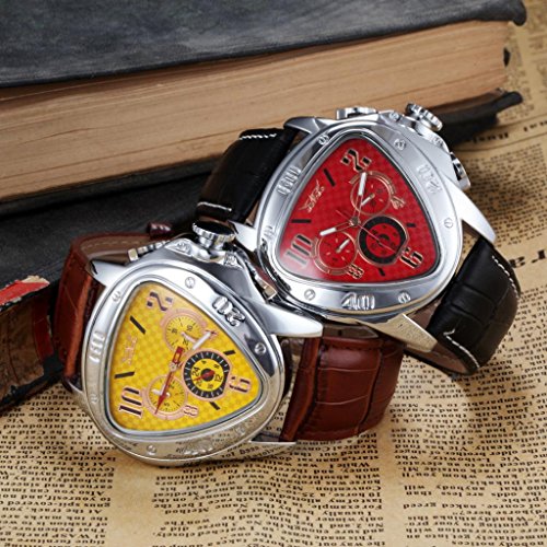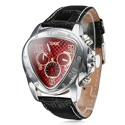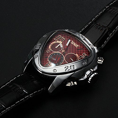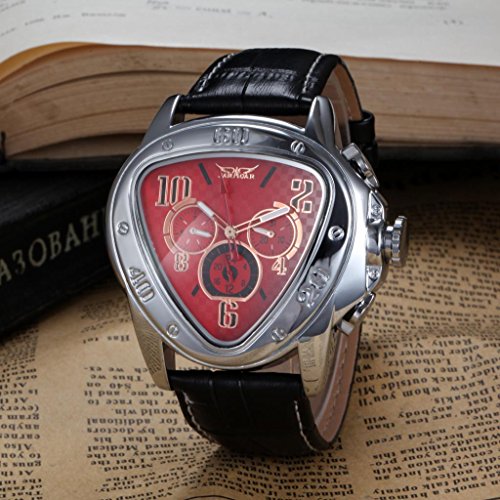 -. Title : Men's Automatic Mechanical Triangle Dial Leather Band Wrist Watch - Red