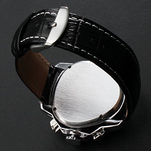 -. Feature : Brand new, fashion design men's watch / Automatic self wind movement / Stylish triangle dial with week & day display / Equipped with leather strap and buckle / Suitable for many occasions in your daily life