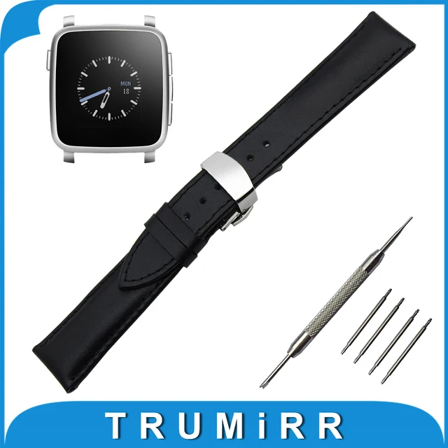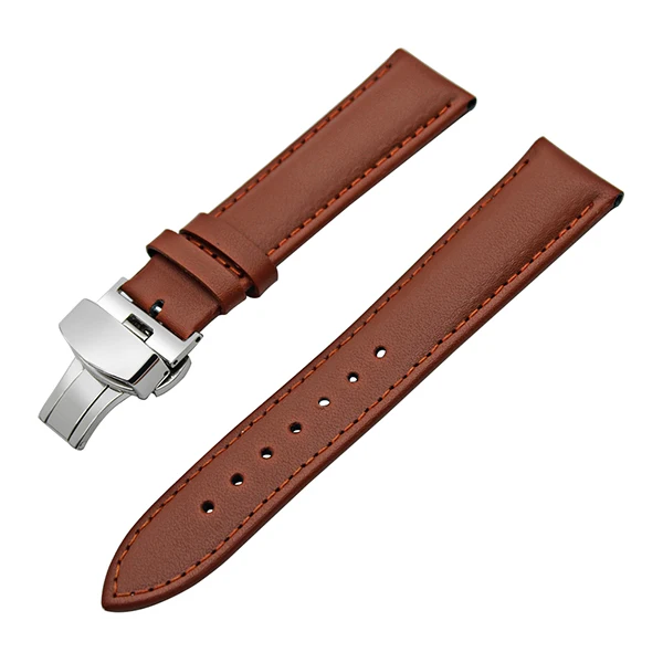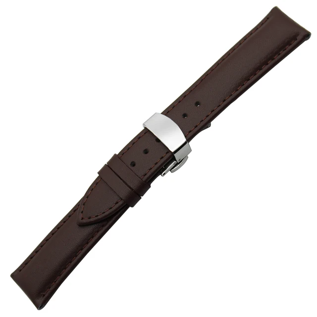 | [해외] 22 미리메터 정품 가죽 시계 밴드 조약돌 시간/스틸 butterfly 버클 스트랩 손목 벨트 팔찌 블랙 브라운 + 봄 바 |