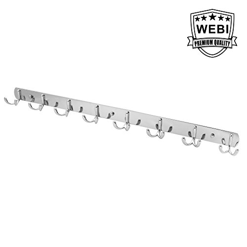 2 Packs, WEBI Heavy Duty Dual Hook Coat Towel Hanger Holder Rack Rail With 16 Double Prong Hook Bathroom Bedroom Kitchen Office Entryway Organization Storage , Wall Mounted, Aluminum alloy