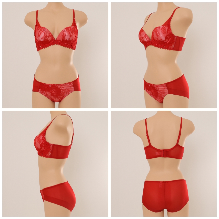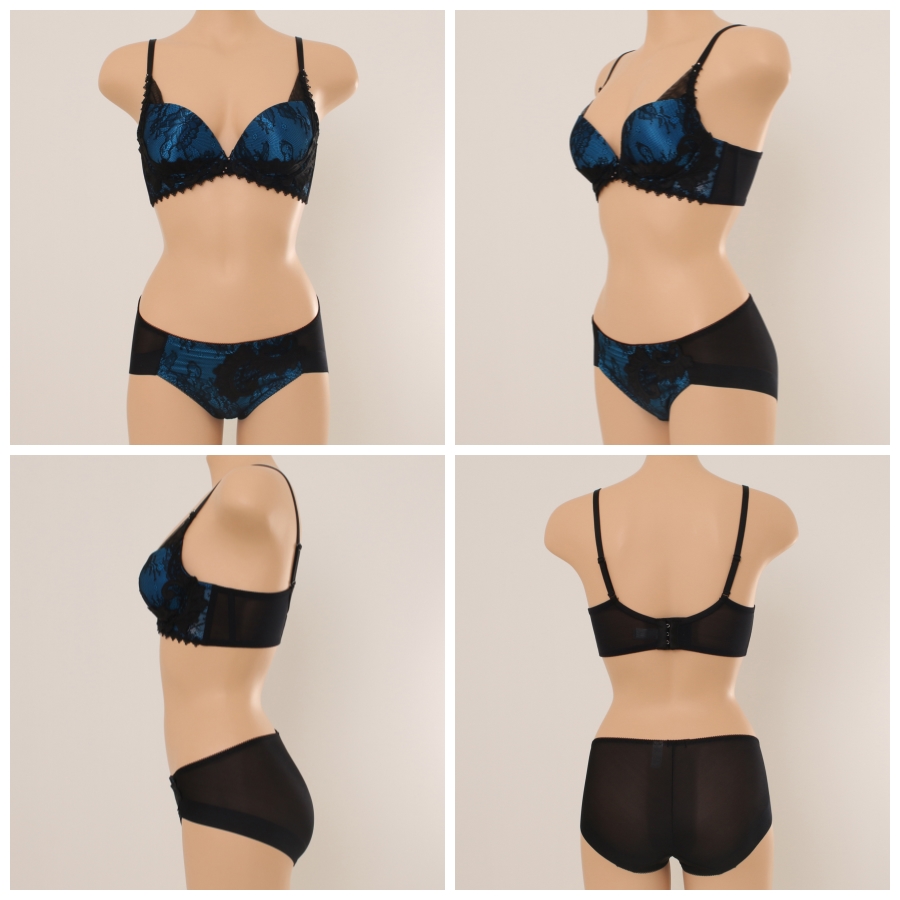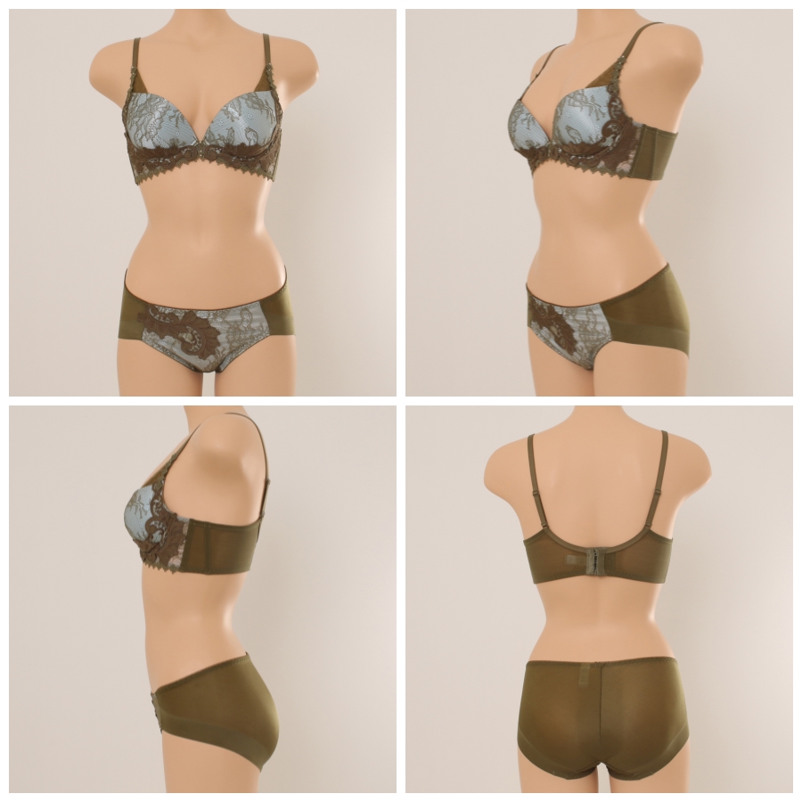 올오버 레이스와 원단 자수 모티브를 매칭하여 럭셔리한 감각을 강조한 저중심 몰드브라햄팬티입니다.
