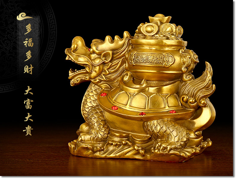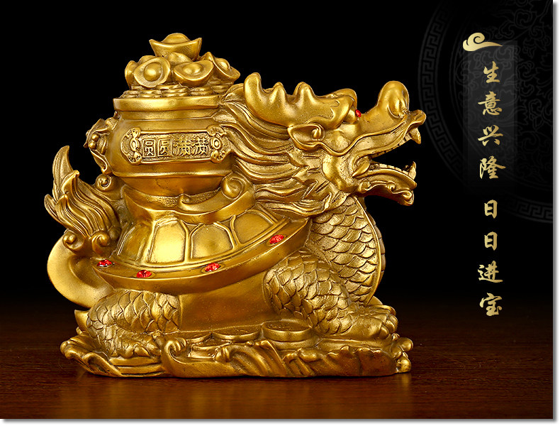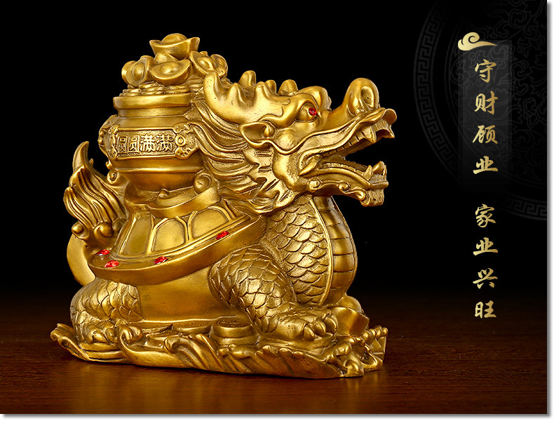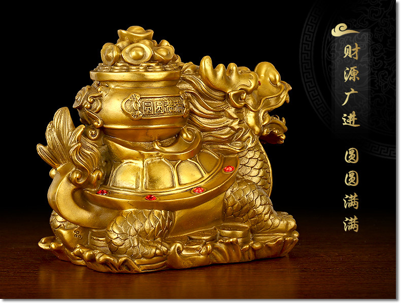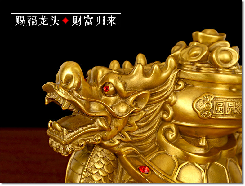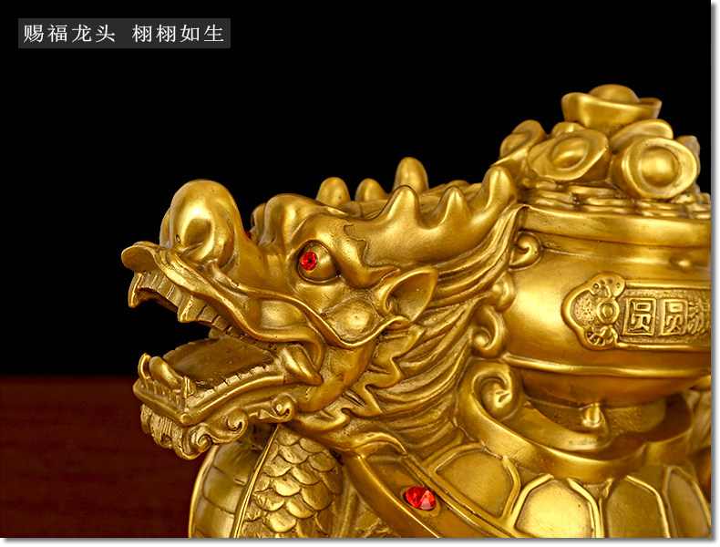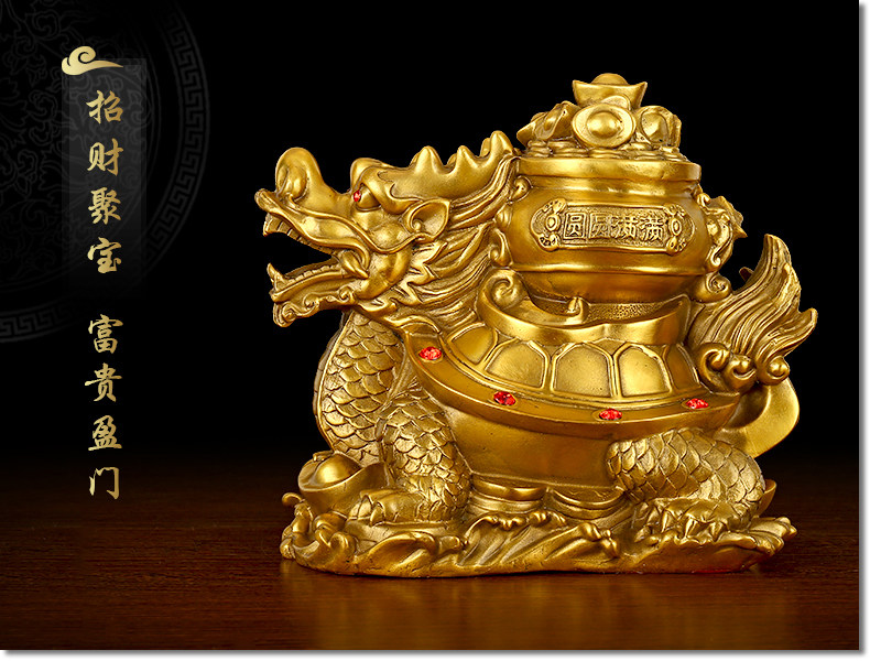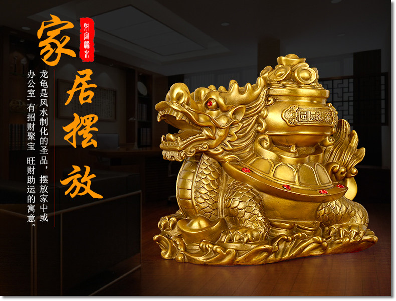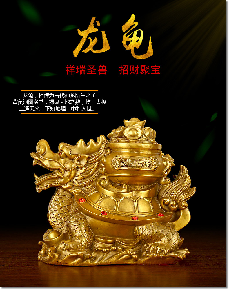 开光龙龟纯铜聚宝盆风水招财聚财摆件大放古铜玄灵护岁龙龟工艺品