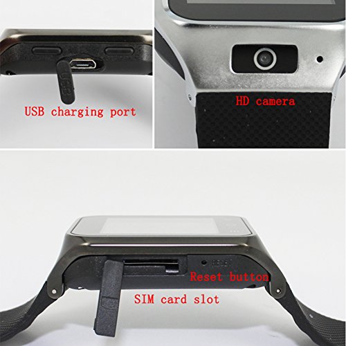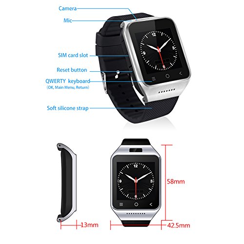 -. Feature : ❐Android 4.4 smart system; 5.0M Prepositive camera; 1.54" 、240X240pixel,capacitance touch screen; 1.2G Dual CPU,GPS,WIFI,Bluetooth,FM,Recorder / ❐Bluetooth 4.0 Support all android APP softwares; Support 3G WCDMA / ❐CPU MTK6572--Dual Core 1.2GHz;ROM:4GB; RAM :512MB; Sim card slot:Yes--Single micro sim card slot; 2G:GSM GSM 850/900/1800/1900; 3G:WCDMA:2100/850 / ❐TF card slot:Yes--support up to 32GB ,Bulid-in can not take out.if need must tell us when place the order; Andriod OS:Yes--Android OS v4.4 / ❐Bluetooth :4.0; Buttons:Two side buttons( power on/off + adjust volume) + front 3 touch buttons(dial+menu+return); USB port:5Pin Micro USB port for earphone and charge.