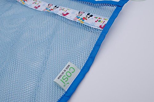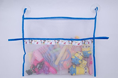 Helencasa Bath Toy Organizer ~ 2 Strong Suction Cups ~ Bathtub Toys Holder Storage Net ~ Exclusively Designed (White/Blue Characters 3 Pockets)