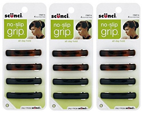 Scunci No-slip Grip Auto Clasp Barrettes, 5.5cm, 4-Count, 3pk, 12 Barrettes Total