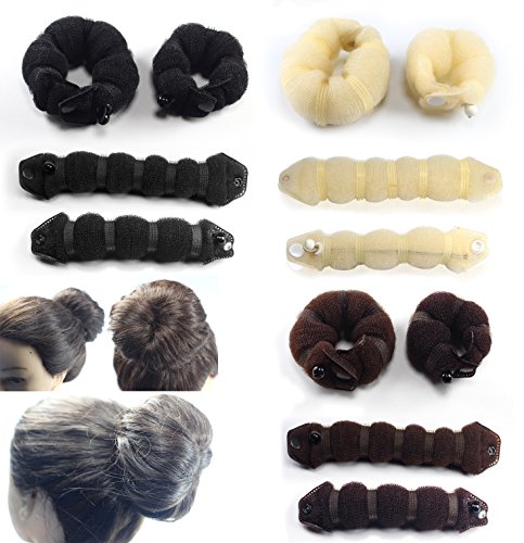 Sc0nni 6 Pcs Beauty Buns Magic Hair Styling Styler Twist Ring Former Shaper Doughnut Donut Chignon Bun Maker Clip Hair Curler Accessory Middle & Large