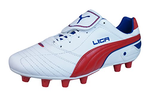 Binding : Apparel Product Description Puma Liga Finale I FG Mens Leather Football Boots / Cleats - Drawing inspiration directly from the flagship heritage boot, the Puma Liga Finale represents great value with a full grain leather upper for great touch and feel.Designed to provide a cleaner kicking area, the Puma Liga Finale tongue improves pressure distribution upon impact with the ball and is secured firmly in place. These Puma football boots have central lacing and a quilted vamp for supreme comfort, while a new heel counter offers added protection and stability, making the Liga Finale a reliable choice.A lightweight TPU injected outsole with conical studs ensure these Puma Liga Finale football boots offer optimal stability and manoeuvrability on a firm ground surfaces. 0
