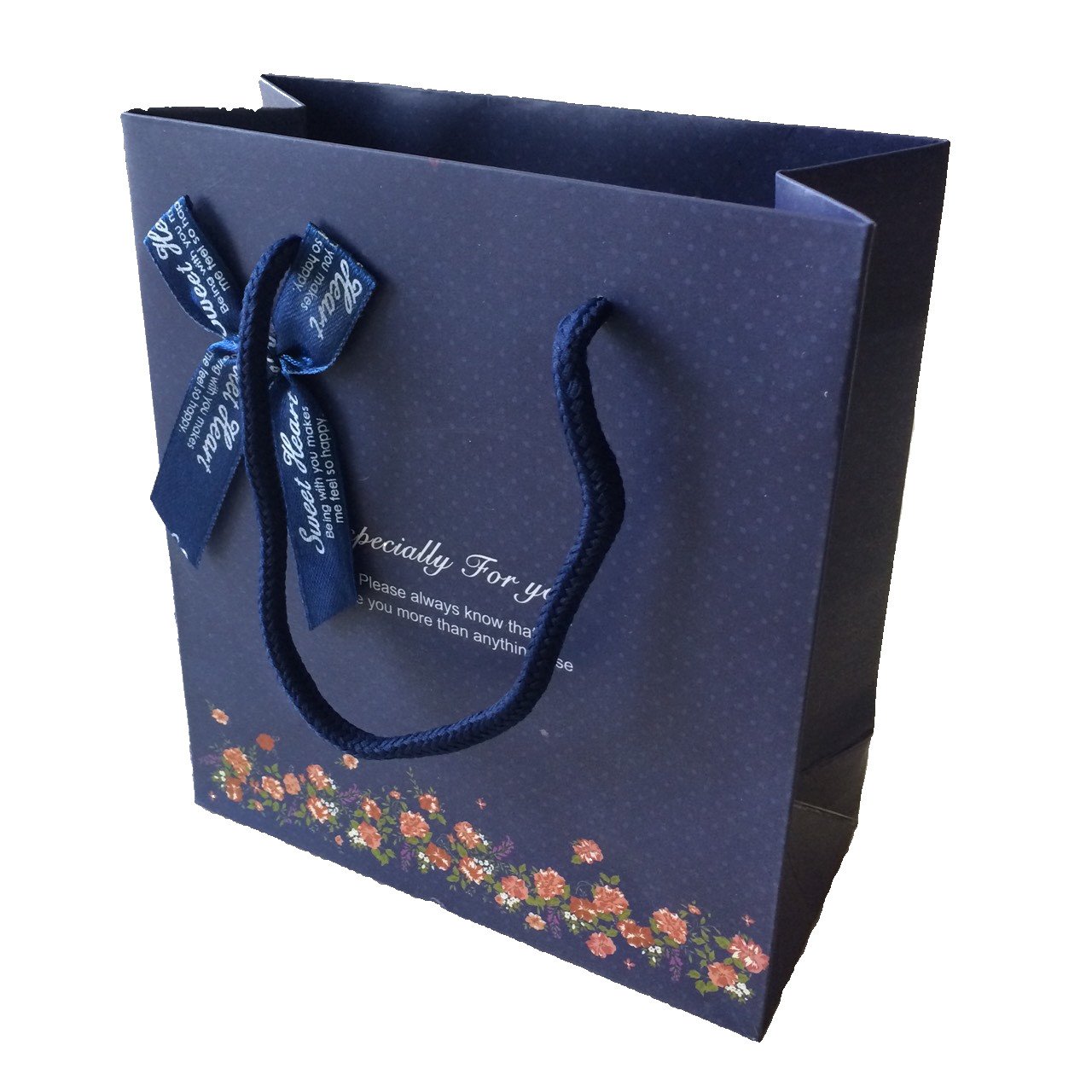 Navy and floral print paper bag