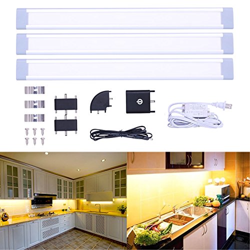 LED Under Cabinet Lighting Kit, Dimmable Touch Sensor Closet Light with 24 LED, Warm White/ White/ Cold White for Anywhere, 3 Pack