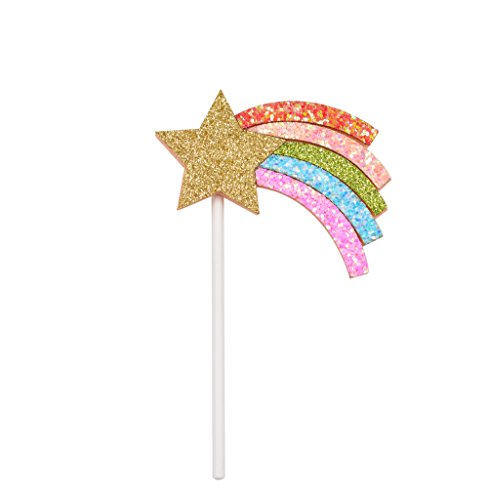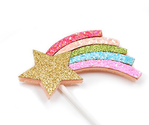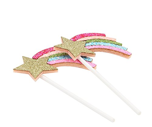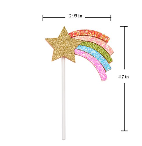 Qttier Rainbow Cake Topper Set Birthday Party Decoration 2Pcs & 6 Gold Glitter Star Cupcake Toppers