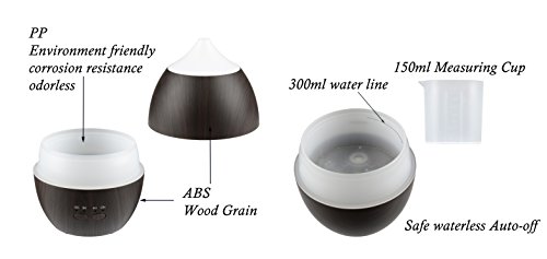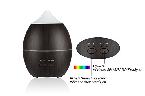 - ★Adjustable 12 color LED Light. The aroma oil humidifier has 12-color LED light that can be cycled or set it to one color you like. Additionally, it can be used as a nightlight.