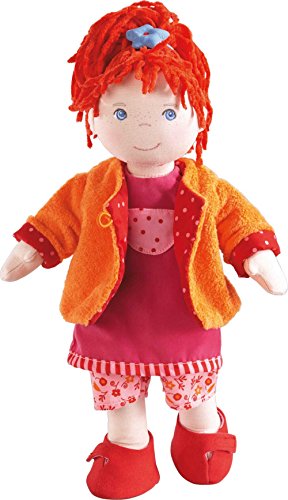 - HABA's classic Lotta has bright blue painted eyes, freckles and red chenille hair tied back with an elastic band. At 15" tall, she comes with a colorful ensemble that is easy to take on and off