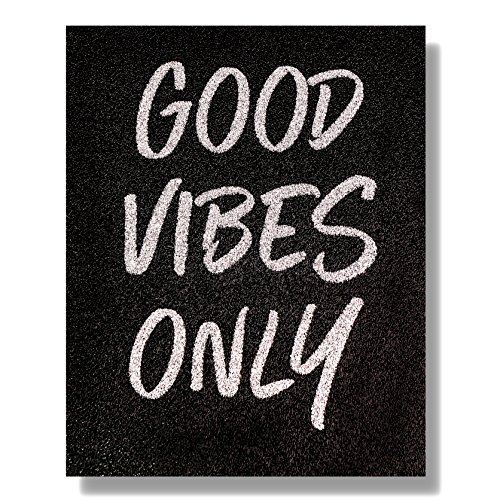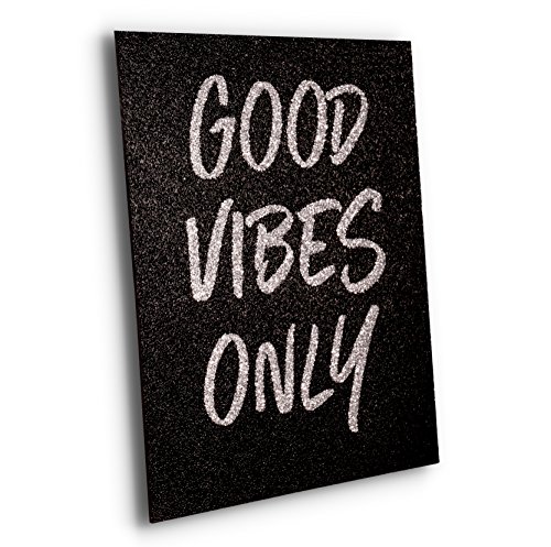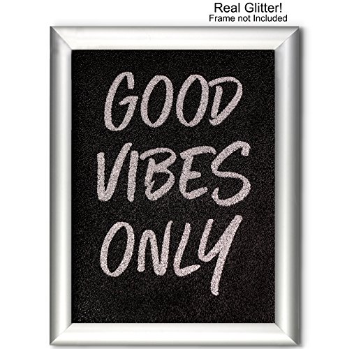 "Good Vibes Only" Silver Glitter Print (Real Glitter!) 8x10 Black Textured Acrylic Panel Girly Decor Motivational Posters Girly Office Decor Real Glitter Gifts for Girls Positive Thinking