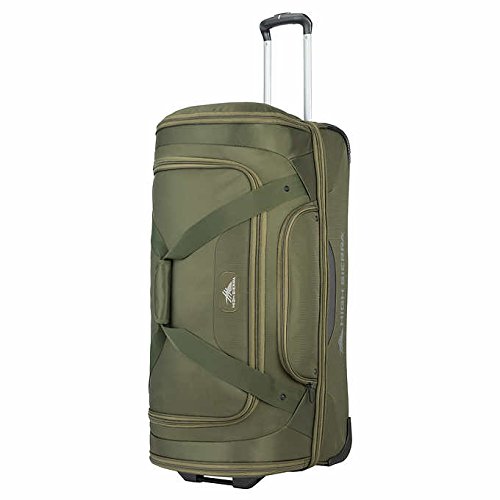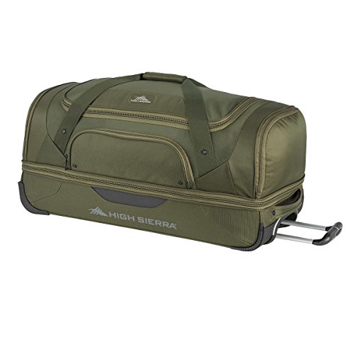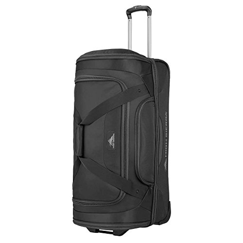 -. Brand : ***High Sierra**** -. Department : mens -. Feature : Durable nylon with coated water resistant bottom / Extra-large u-shaped main compartment zippered opening / Large drop-bottom compartment with zipper divider / Durable textured and water resistant bottom panel with protective rails / Overall dimensions: 30" x 15" x 13.5" -. ProductGroup : Apparel -. ProductTypeName : LAGE -. Size : X-Large -. Title : High Sierra 30" Rolling Duffel with Oversize Skate Wheels, Multiple Grab Handles, Sturdy Telescoping Handles