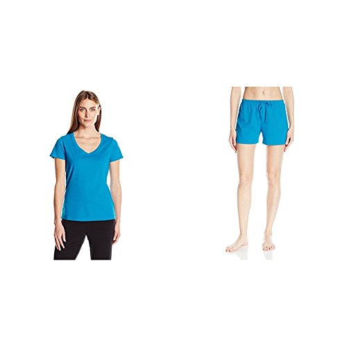 -. Binding : Apparel -. Brand : Jockey -. Department : womens -. Feature : Featuring a drawstring waistband and wide, roomy legs. Its easy silhouette is perfect for relaxing in or going about your day / Boxers have a 4 inch inseam / Featuring a ribbed v-neckline, tag less label, short sleeves, and a hem that hits at the hip. Easy silhouette is perfect for relaxing in or going about your day / V- neck is 26 inches long -. Label : Jockey -. Manufacturer : Jockey -. ProductGroup : Apparel -. ProductTypeName : SLEEPWEAR -. Publisher : Jockey -. Studio : Jockey -. Title : Jockey Women's Cotton Boxer and V-Neck Tee
