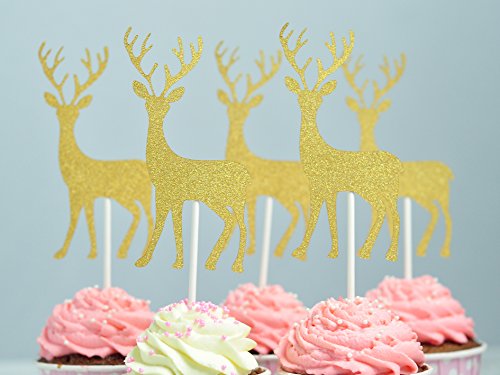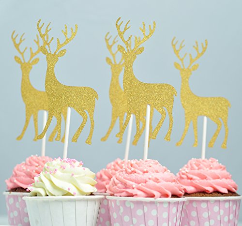 BeBeFun Cupcake Decorative Toppers Glitter Gold Toppers Bucks Shape Cupcake Decorating Tools for Wedding Birthday Party Supplies 20Pcs in Pack.(Buck Gold)