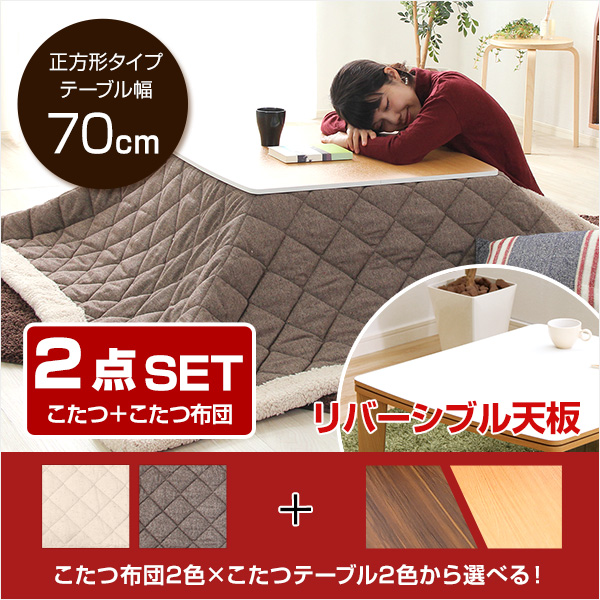 ●70cm幅・正方形のこたつテーブルとこたつ掛布団が付いた2点セット!