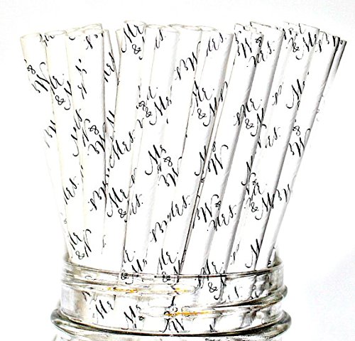 -. Title : Mr. & Mrs. Paper Straws- Party Disposable Straws (50 Straws)