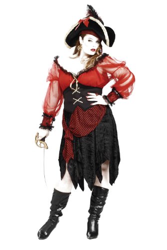 -. Binding : Apparel -. Brand : Forum Novelties -. Department : womens -. Feature : Sassy women's pirate costume / Headscarf, top, corset belt, and skirt / Plus size for women best fits dress sizes 18-22 / Hat, costume weapons, costume jewelry, and many other pirate accessories available separately from forum novelties / From funny to frightening forum has it all -. Genre : Classic -. IsAdultProduct : 0 -. Label : Forum Novelties Costumes -. Manufacturer : Forum Novelties Costumes -. PackageQuantity : 1 -. ProductGroup : Apparel -. ProductTypeName : ADULT_COSTUME -. Publisher : Forum Novelties Costumes -. Studio : Forum Novelties Costumes -. Title : Forum Novelties Women's Plus-Size Buccaneer Beauty Plus Size Pirate Costume